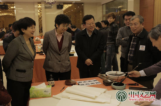 與會領導在現(xiàn)場觀摩書畫家創(chuàng)作。中國文藝志愿者協(xié)會 桑健博 攝
