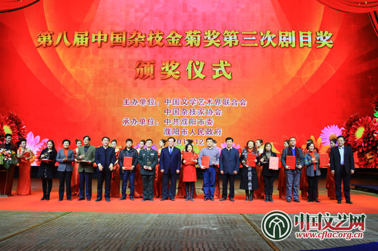 12月27日,由中國文學藝術界聯(lián)合會、中國雜技家協(xié)會主辦的第八屆中國雜技金菊獎第三次劇目獎頒獎儀式在河南濮陽舉行。本次劇目評獎中,全國16省、直轄市、自治區(qū)、解放軍共30個雜技院團的40臺雜技劇目報名參賽,參賽劇目的數量和質量較前兩屆均有較大幅度提升,最終評出了優(yōu)秀劇目獎、創(chuàng)新獎、最佳音樂獎、最佳編導獎和評委會特別獎。