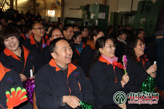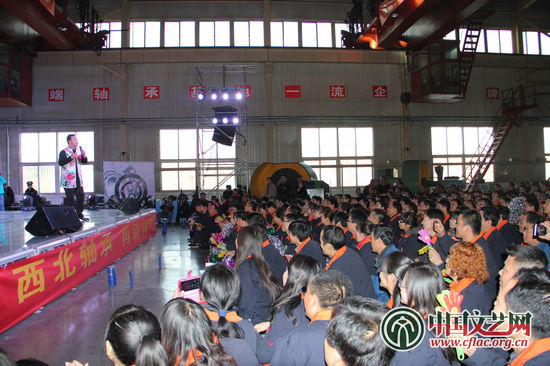 1月5日,寧夏西北軸承股份有限公司的生產車間沒有了平日里轟鳴的機器聲,取而代之的則是職工們一浪高過一浪的掌聲與喝彩聲。當天,由中國文聯、寧夏回族自治區人民政府、自治區黨委宣傳部、中國曲協、寧夏文聯主辦的“我們的中國夢——送歡樂下基層”文藝志愿服務團走進寧夏慰問演出在此舉行。此次演出也是中國文聯曲藝藝術中心承辦的首場文藝志愿服務活動。