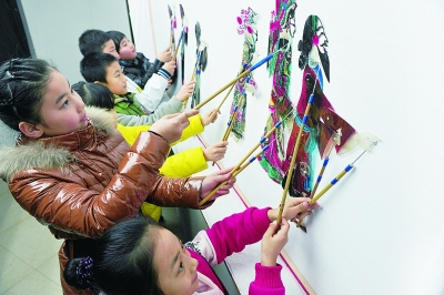 圖為灤州神龍少兒皮影藝術團的小演員在表演 邱明瑜攝