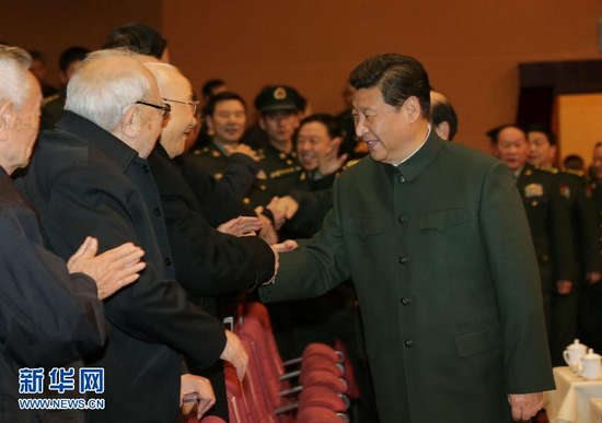 中華民族傳統節日馬年春節到來前夕,為民族獨立和解放建立卓著功勛、為國防和軍隊現代化建設作出突出貢獻的駐京部隊老同志歡聚一堂。回顧過去的一年,大家深切感到,以習近平同志為總書記的黨中央,用中國夢凝聚力量,以抓改革激發活力,以改作風振奮人心,治黨治國治軍有新方略,改革發展穩定有新成就,內政外交國防有新氣象,全黨全軍衷心擁護,全國各族人民歡欣鼓舞。大家一致表示,在新的一年里,要深入貫徹黨的十八大和十八屆三中全會精神,堅決貫徹落實習主席和中央軍委的決策指示,牢牢把握黨在新形勢下的強軍目標,堅決聽黨指揮、做好軍事斗爭準備、持續改進作風、深化軍隊改革,不斷開拓國防和軍隊建設新局面。