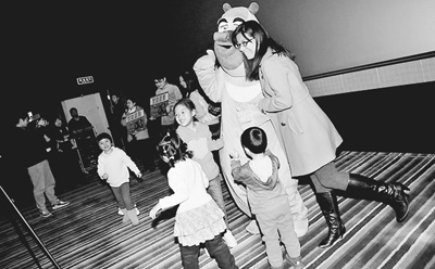 小觀眾和家長與動畫片主人公玩偶合影。資料圖片