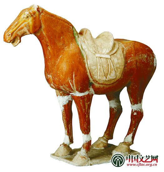 馬作為財富與身份的象征,自商周時期就是一項重要的陪葬物品。不同身份等級的人所乘車輛的馬匹數量有嚴格的等級控制,這點從天子駕六遺址中便可知曉。從早期真的車馬陪葬到后來的陶馬,其財富的象征意義一直沒有改變。唐代三彩陶器盛行,馬的形象是唐三彩的重要題材。