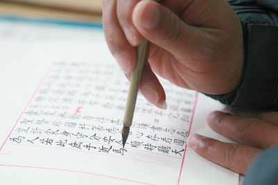 廣陵古籍刻印社的工藝師在寫樣,據此來雕版印書。新華社發(崔根元攝)