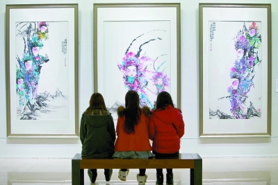觀眾在中國美術館欣賞中國畫。新華社發(趙冰攝)