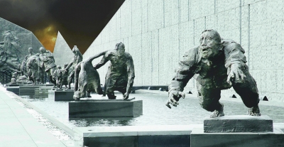 2014年2月25日,十二屆全國人大常委會第七次會議通過了每年12月13日為南京大屠殺死難者國家公祭日。從此,這紀(jì)念館承載的意義更為突出。回憶當(dāng)年,我接受為侵華日軍南京大屠殺遇難同胞紀(jì)念館擴(kuò)建工程創(chuàng)作設(shè)計(jì)大型組雕是在2005年12月15日,是“大屠殺”祭日——12月13日的兩天后。時(shí)值寒冬,北風(fēng)凜冽。我的心情沉重,仿佛時(shí)間倒流到1937年那血雨腥風(fēng)的歲月,那逃難的、被殺的、呼號的……我恍惚走向南京城西江東門,這里是當(dāng)年屠殺現(xiàn)場之一。白骨層層鐵證男女老少平民屈死于日軍的殘暴下。而今紀(jì)念館擴(kuò)建又在地下挖出一批尸骨。極目西望長江滔滔,平靜中有巨大的潛流,儼然30萬亡靈冤魂的哀號。自1982年我求學(xué)于南京,至今20多年間,我常常陪友人、國際來訪者,甚至日本同行來此憑吊。我們也常常看到日本人士抱著懺悔和贖罪的態(tài)度在獻(xiàn)花。我覺得這是每位有良知的人類一分子應(yīng)有的歷史態(tài)度。這種帶著人性真善情懷而生發(fā)的悲劇意識,是人類和平的心理基礎(chǔ)之一。