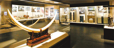圖為中國海關博物館展示的海關查獲的走私象牙。