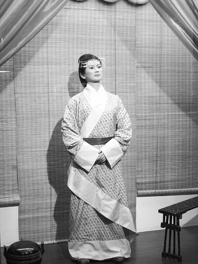 “素紗禪衣”是馬王堆漢墓隨葬物品中最為引人關(guān)注的一件文物。衣長(zhǎng)128厘米,通袖長(zhǎng)190厘米,由上衣和下裳兩部分構(gòu)成。交領(lǐng)、右衽、直裾。面料為素紗,緣為幾何紋絨圈錦。素紗絲縷極細(xì),共用料約2.6平方米,重僅49克,還不到一兩。可謂“薄如蟬翼”“輕若煙霧”,且色彩鮮艷,紋飾絢麗。它代表了西漢初養(yǎng)蠶、繅絲、織造工藝的最高水平。這件素紗禪衣中,禪衣用紗料制成,因無(wú)顏色,沒(méi)有襯里,出土譴冊(cè)稱其為素紗禪衣。