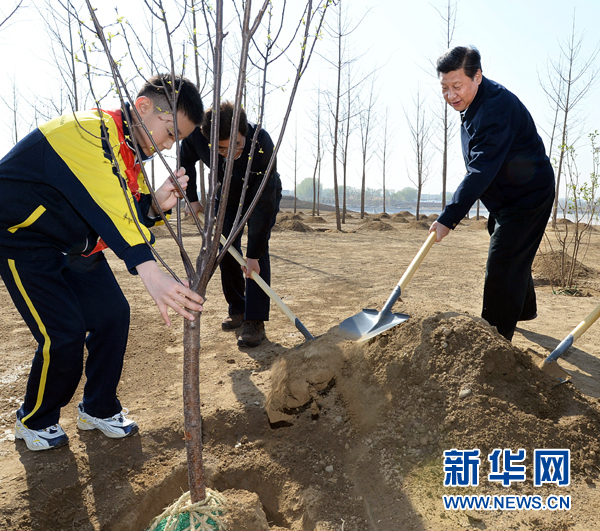 習近平等參加義務植樹活動:保護好每一寸綠色