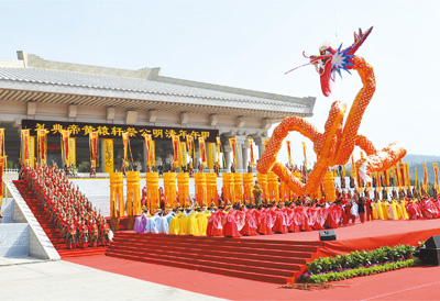 4月5日,清明公祭軒轅黃帝典禮在陜西省黃陵縣橋山黃帝陵祭祀廣場舉行。新華社記者 丁海濤攝