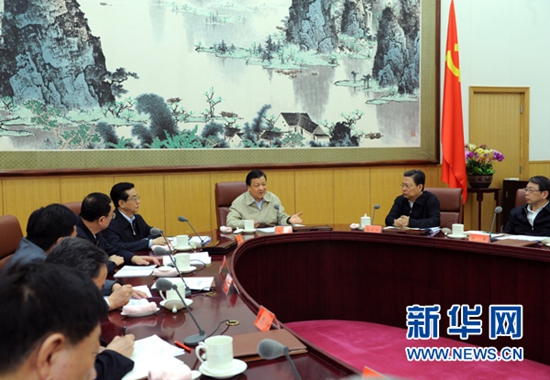 4月27日,中共中央政治局常委、中央黨的群眾路線教育實踐活動領導小組組長劉云山在北京主持召開中央黨的群眾路線教育實踐活動領導小組會議。新華社記者 饒愛民 攝
