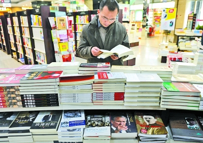 南京市鳳凰書城里看書閱讀購(gòu)買圖書的讀者; CFP