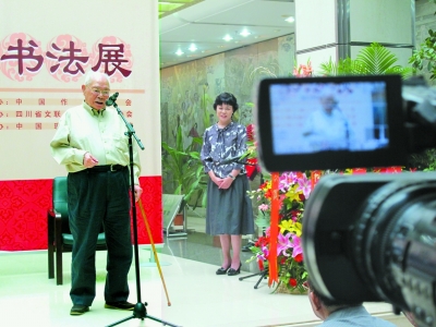 “這次我能有辦書法展的殊榮,恐怕與我癡長百歲有關。”老爺子是出了名的喜歡“逗趣”。他說,這次到北京,不是來向朋友們告別的。中國作家協會全國代表大會已經召開了八次,他參加過七次,“我還有一個‘五年計劃’,就是參加下一屆全國作代會。”