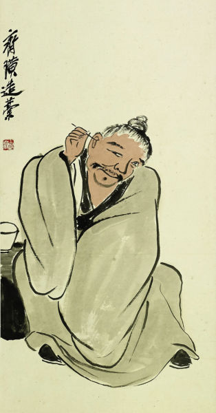 如果說齊白石的花鳥作品是其藝術(shù)成就的典型代表的話,那么,他的人物畫則可以說是其作品“民間味”意涵的具體呈現(xiàn)。《布袋和尚》(下圖)為日本著名收藏家須磨彌吉郎舊藏,在中國嘉德(香港2014春拍中以966萬港元)成交。《洗耳圖》(上圖)在廣州華藝國際2014春拍中以1380萬元成交。