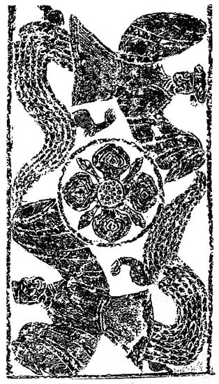 山東蒼山元嘉元年畫像石墓的長篇銘文記載云:“中直柱,雙結龍,主守中溜辟邪殃。”作為中直柱,正是撐天的巨柱,天地的溝通,正是靠兩龍相交而進行的。