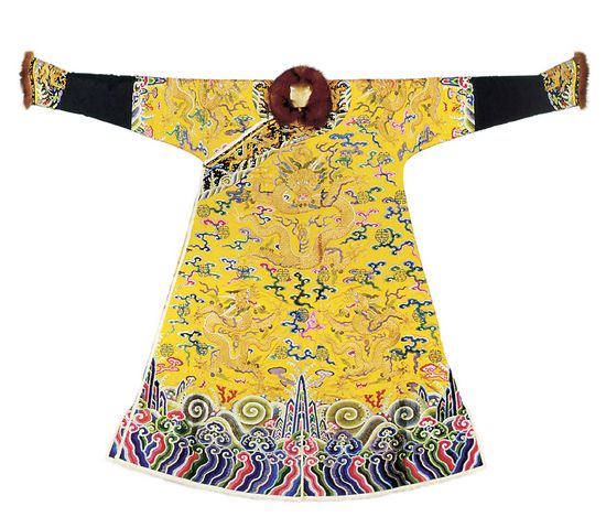 雍正 明黃色緞繡云龍銀鼠皮龍袍