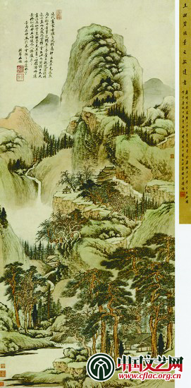 清初王時敏《西廬畫跋》云:唐宋以后,畫家正派,自元季四大家,趙承旨外,吾吳、沈、文、唐、仇,以臬董文敏,雖用筆各殊,皆刻意師古,實同鼻孔出氣。