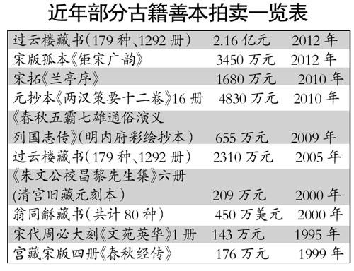 古籍善本價格二十年漲十多倍