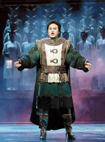 幾年間,戴玉強(qiáng)在國內(nèi)成功地主演了10部西洋經(jīng)典歌劇中的7部:普契尼的《繡花女》《圖蘭朵》,威爾第的《弄臣》《游吟詩人》《茶花女》,比才的《卡門》,馬斯卡尼的《鄉(xiāng)村騎士》等。不僅如此,他更專注于中國原創(chuàng)歌劇的首演與挖掘,先后主演《趙氏孤兒》《西施》《野火春風(fēng)斗古城》《青春之歌》《太陽雪》等中國歌劇。他說:“歌劇在中國曾一度跌入低谷,近年來才有升溫趨勢,但中國歌劇界的整體水平與西方相比還差得很遠(yuǎn),我們的歌劇創(chuàng)作與演出目前還處在初級(jí)的階段,上演的都是傳統(tǒng)的西方戲劇,這也是我、廖昌永等人為之努力的方向。”