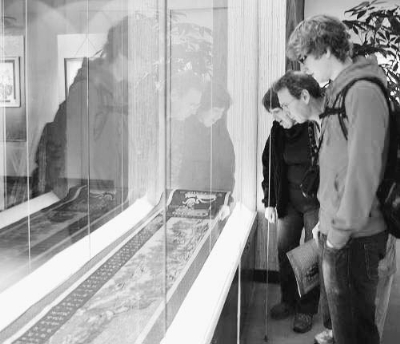 2012年12月28日,“世界非物質文化遺產柘榮剪紙展覽”在福建福州開幕,圖為外國游客在參觀展覽。新華社記者 林善傳 攝