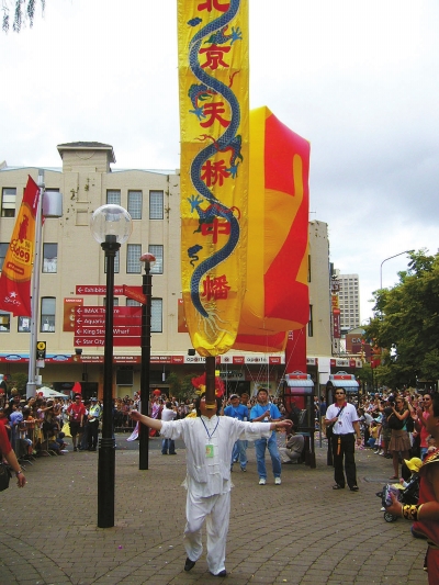 2005年春節(jié)傅文剛在澳大利亞表演天橋中幡