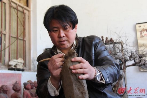 鄭杰,今年43歲,一位癡迷于泥塑和日照文化的民間藝術家,一位市級非物質文化遺產泥塑藝術的傳承者。