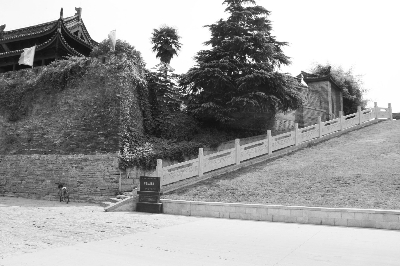 記者看到,古城墻古樸滄桑、保存完好。然而,在城墻的馬道上,有著體量較大的青白色護欄。欄面上雕刻著蘭花、荷花、云紋等花樣,工藝十分粗糙。在用青石砌成的階梯上,雜草叢生。對此,李鳳鑫解釋,青石間不能用水泥封縫,長出雜草屬于正常現象。而馬道旁邊的護欄建于2007年左右,“每天早上、黃昏,有很多老人、小孩來城墻鍛煉。沒有欄桿作為扶手,老人登墻不方便,小孩很容易滑下去。護欄本身并不涉及對城墻文物本體的破壞。”