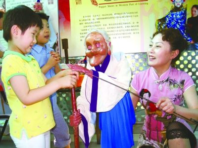 上海世博會上,王娜手中的遼西木偶吸引了很多小朋友的目光。