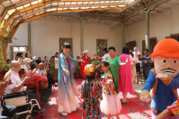 學員們“尋根庫車、龜茲在望”,深入老城街區、特色鄉鎮、基層村落、產業基地,對話庫車百姓,用歌聲與舞蹈與當地群眾親密交流。