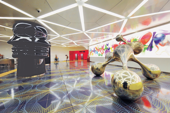11月5日,在意大利那不勒斯,人們走在埃及藝術家卡里姆·拉希德設計的大學地鐵站里。新華社/法新