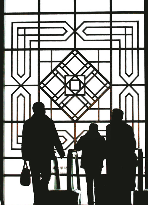當日是2013年春運第五天,在南京南站,春運客流和獨特的候車大廳設計相互映襯,形成一道別樣的風景。