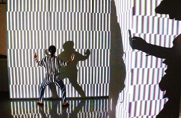 5月7日,觀眾在武漢K11藝術村舉辦的《駐地數字藝術展》上參觀體驗。當日,2013“中法文化之春”系列活動之一的《駐地數字藝術展》開幕。該展覽展示了法國數名多媒體藝術家與22名湖北美院的師生創作的數字新媒體藝術和當代藝術作品,內容豐富,形式新穎,令觀眾目不暇接。