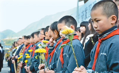 5月12日上午,北川各界群眾代表準(zhǔn)備敬獻(xiàn)鮮花。當(dāng)日,四川省北川羌族自治縣在老縣城地震遺址舉行祭奠活動(dòng),深切悼念“5·12”汶川特大地震遇難同胞。