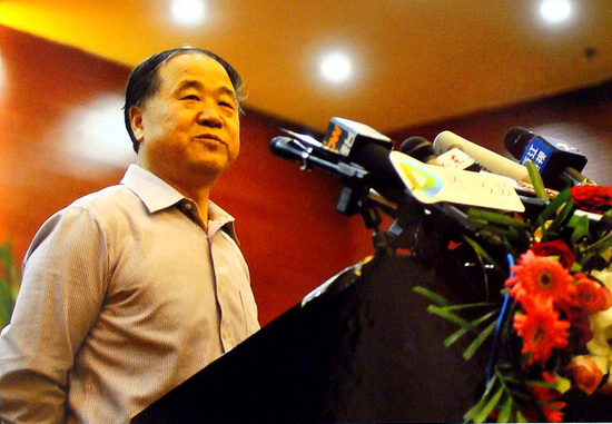 “科學發展 成就輝煌”圖片展·“文化建設”部分·2012年10月1日,莫言獲得2012年諾貝爾文學獎。圖為莫言在接受記者采訪。