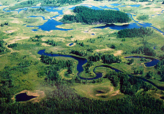 “科學發展 成就輝煌”圖片展·生態文明部分·加強濕地保護。圖為黑龍江大沾河濕地。