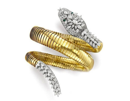 蛇是頗具靈性的生物,古時便有將靈蛇比喻才華橫溢之人的說法。這些看似兇猛的靈獸,在珠寶設計師眼里卻宛若蛟龍,憑借高超的珠寶工藝,將他們塑造成項鏈、指環、耳環等精美首飾,佩戴之余也有征服猛獸的勝利感吧,在2013蛇年,蛇形珠寶想必也會大熱一把。