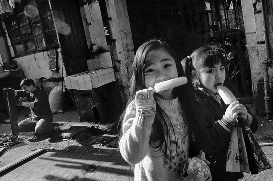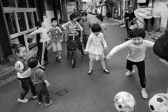 弄堂里一起玩耍的孩子們,這樣的場景在大都市已經很少見了