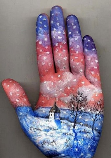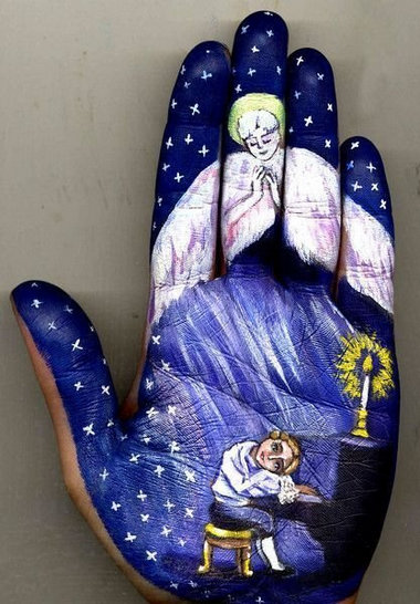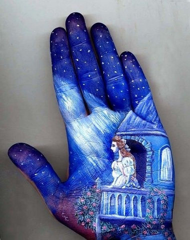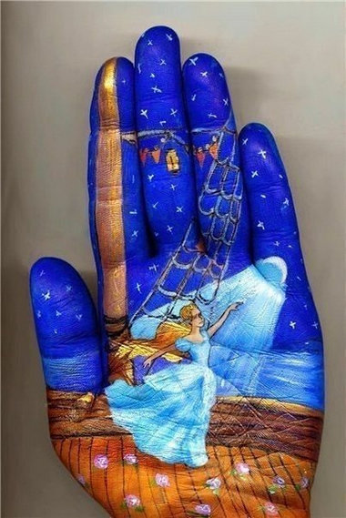 受著名童話作者安徒生、德圣埃克絮佩里等人的影響,俄羅斯藝術家 Svetlana Kolosova 在自己的手掌上畫出了溫暖的童話。