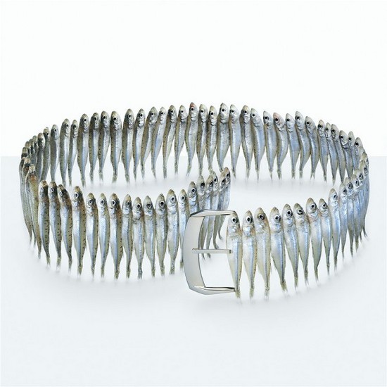Fulvio Bonavia :『拍攝食物的秘訣就是動作要快,因為在強光下食材幾分鐘內就會壞掉,魚,這是難度較高的作品之一,因為無法從單一角度拍攝新鮮的魚,所以我決定拍三張不同的照片,再后期組合成一張,我把魚排成三排,把這些魚放在透明板上,每種物體的拍攝手法各異,在有些照片中食物的設計感成了主角,有些則凸顯時尚藝術風格,只是借由食物展現不同的表現手法。』