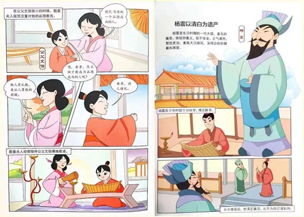 《楊震以清白為遺產》《敬姜夫人教子勤儉》等,