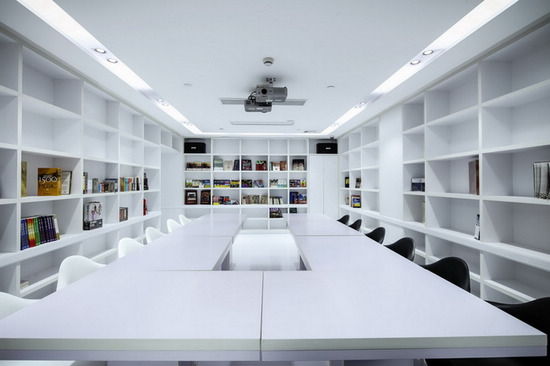 二層設置了一個空間作為書友會與研討會之用,現代化的影音設備可以從多方面滿足這間屋室的使用需求。