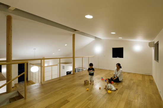 House H 是一棟私人住宅,位于日本名古屋。它所在的住宅區在山腳下,周圍都是低矮的建筑,樣式以兩三層的傳統民居為主,只有 House H 顯得與眾不同。這家的男主人是一位在涂料公司任職的上班族,一家三口的居住面積用不著太大,所以住宅的占地面積只有 115 平方米左右。業主一家將設計任務委托給了日本 Mattch 設計事務所,提出的想法是采用開放式的內部空間,將住宅面積的利用率最大化。