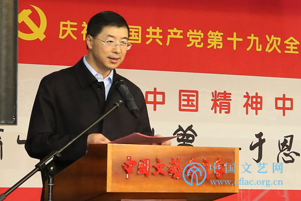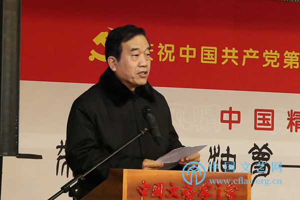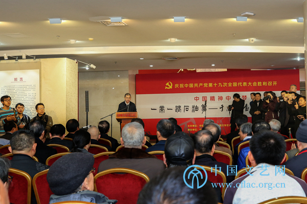 由中國(guó)書(shū)協(xié)、中國(guó)文學(xué)藝術(shù)基金會(huì)、中國(guó)石油文聯(lián)共同主辦,中國(guó)石油書(shū)法家協(xié)會(huì)承辦的“一帶一路石油夢(mèng)”——于恩東書(shū)法實(shí)踐展于12月5日至10日在中國(guó)文藝家之家展覽館舉行。中國(guó)文聯(lián)黨組成員、副主席趙實(shí),中國(guó)文聯(lián)黨組成員、副主席左中一、李前光、郭運(yùn)德,中國(guó)石油天然氣集團(tuán)公司黨組成員、副總經(jīng)理喻寶才,以及覃志剛、蘇士澍、趙學(xué)敏等各主承辦方、中國(guó)文聯(lián)機(jī)關(guān)各部室、各全國(guó)文藝家協(xié)會(huì)負(fù)責(zé)人出席展覽開(kāi)幕式。趙實(shí)宣布展覽開(kāi)幕。