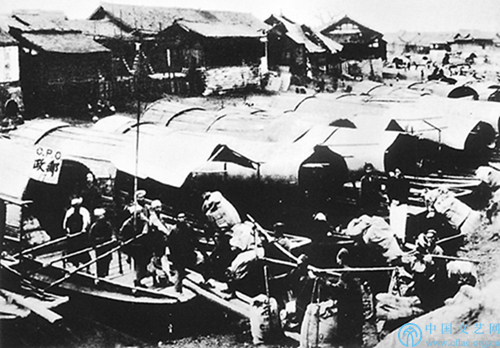 用船只運送郵件的場景 杭嘉湖水網 20世紀20年代 嘉興郵電博物館提供
