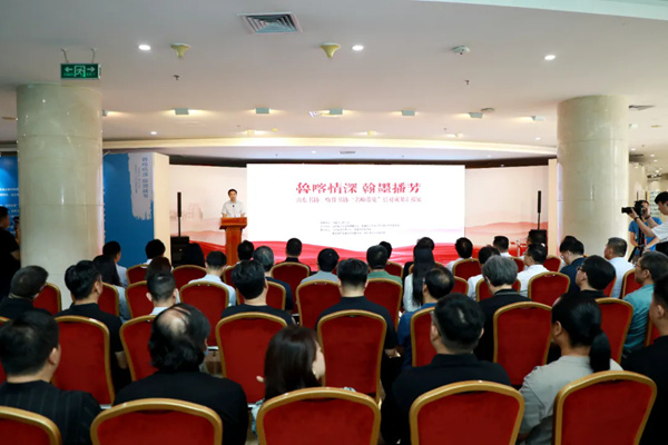 開幕式上,與會嘉賓共同觀看《魯喀情深·翰墨播芳》專題片。徐永軍、李昕、葉培貴、張繼、何思清、鄧選斌共同為展覽啟幕。