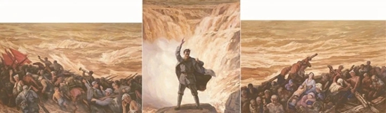 黃河大合唱——流亡·奮起·抗爭 油畫2009年 280cm×435cm×2 332cm×285cm詹建俊 葉 南 中國美術館藏
