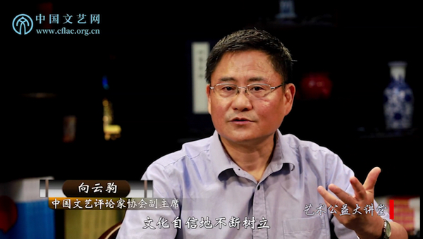 在接受《藝術公益大講堂》專訪時向云駒為我們介紹了這些年他在文藝理論批評上的成果以及在非物質文化遺產保護方面所做的貢獻。向大家講述了當代文藝工作者應如何立足于中華文化身份,建立真正的文化自信