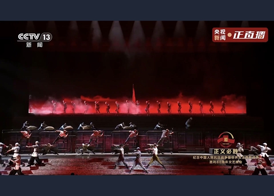 9月3日晚,紀念中國人民抗日戰爭暨世界反法西斯戰爭勝利80周年文藝晚會《正義必勝》在人民大會堂舉行。不同于以往常見的文藝晚會,《正義必勝》突出“劇”的特點,綜合運用音樂、舞蹈、情境戲劇等多種舞臺藝術形式,呈現出史詩氣質。約90分鐘的時長里,《正義必勝》以倒計時開篇,將時間回溯,“怒吼吧,黃河”“紅星照耀中國”“不可戰勝的力量”“共同的黎明”“正義永恒”5個篇章,鮮明昭示了正義必勝、和平必勝、人民必勝的永恒真理。