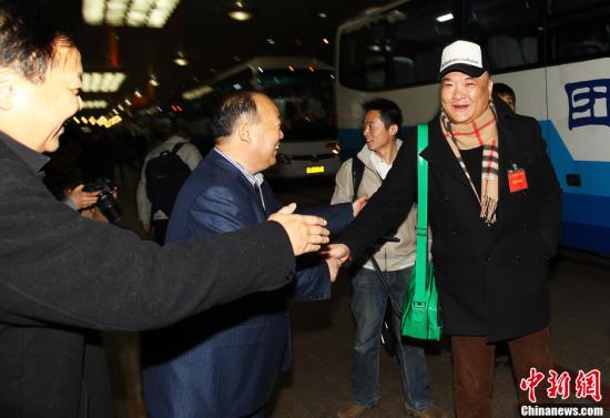 3月2日凌晨6時(shí)許,參加2012全國兩會(huì)的第一批人大代表乘坐由鄭州開往北京西站的K180次列車抵京。圖為豫劇大師常香玉破例跨界收的唯一男弟子范軍(右一)。中新社記者王中舉攝