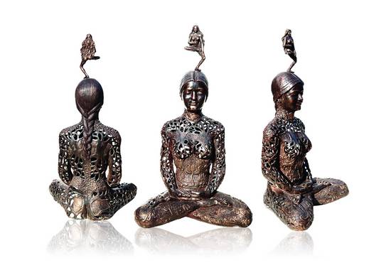 藝術(shù)家利亞斯·科姆通過名為‘Agam Puram’的裝置作品來探索主題。其中心主題“坎那基” ( Kannagi)表現(xiàn)的是:女性正面接受不公正待遇挑戰(zhàn)的神圣形象:她天神般挺立,一臂直指目之所及的方向,與“自由女神像”有相似之處。